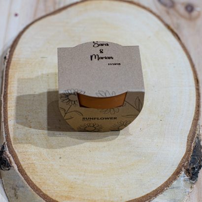 La mini maceta con semillas de girasol es un regalo original y además contribuimos al un mundo mas sostenible y consciente