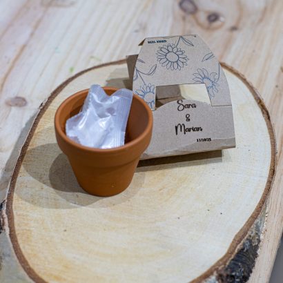 La mini maceta se puede personalizar con laser o pegatina.